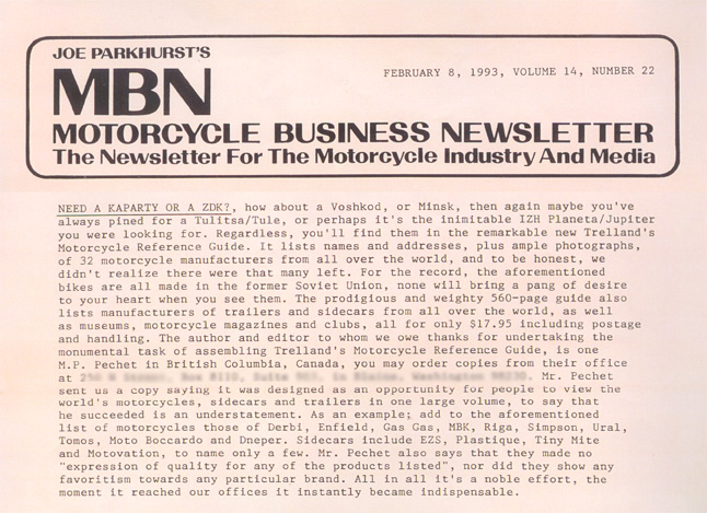 Newsletter review of the Motorcycle Reference Guide. Text