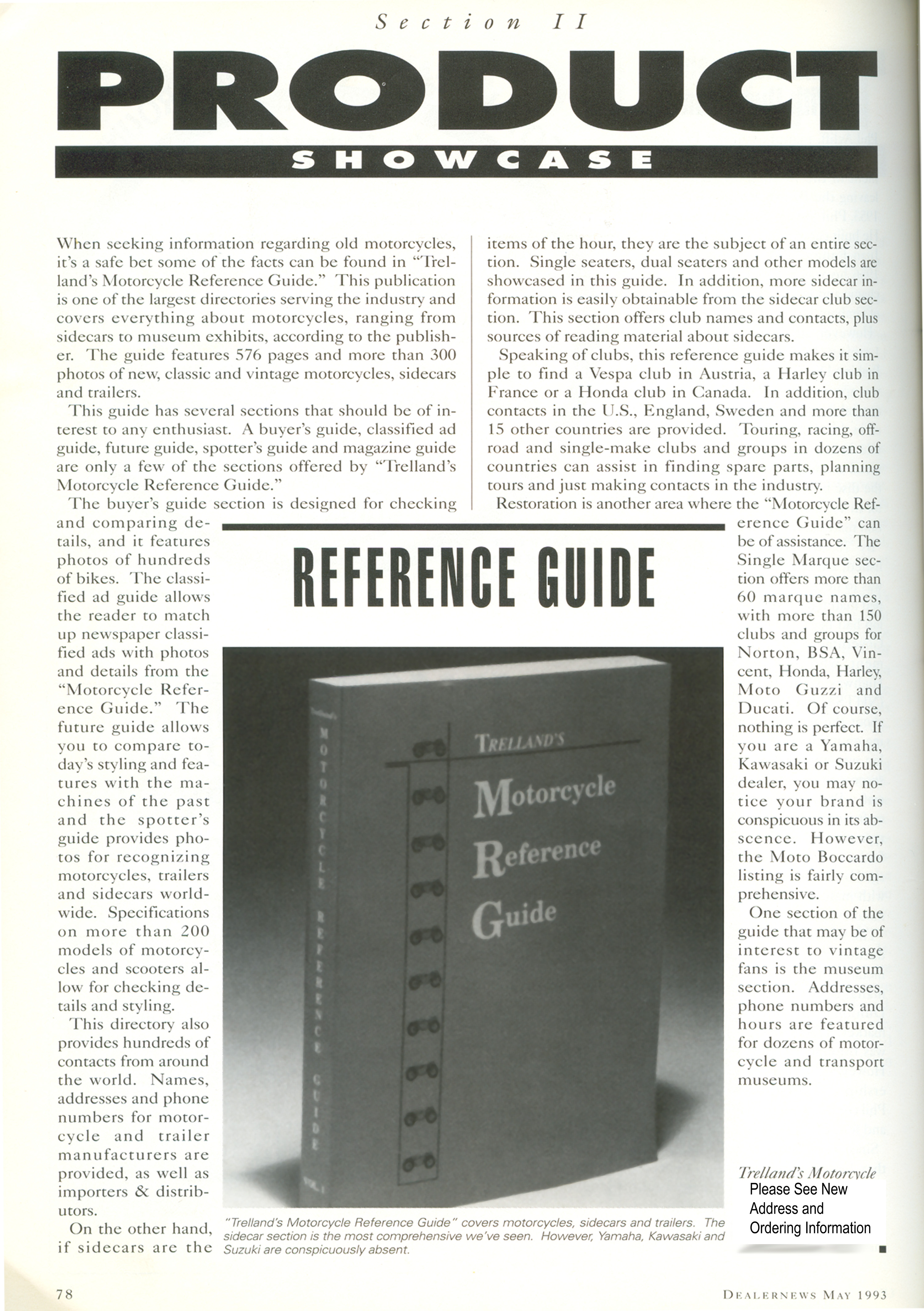 Motorcycle Reference Guide has more than 500 pages of motorcycle